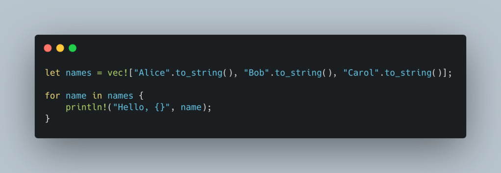 Note: vec is no longer accessible here. The line println!("{:?}", vec); will cause a compile-time error: value moved. Once you use into_iter(), the Vec itself is moved. After the loop, you can no longer use vec because the ownership has been transferred. This is ideal when you don’t need the original collection anymore and want to avoid copying values.